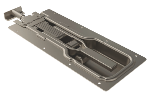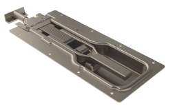 Zamek wpuszczany ocynkowany galwanicznie do burty aluminiowej z zaczepem typu T. Prosty i skuteczny sposób blokady burt aluminiowych w zabudowach skrzyniowych
