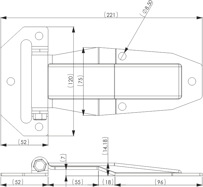 Zawias drzwi bocznych nierdzewne 221 mm